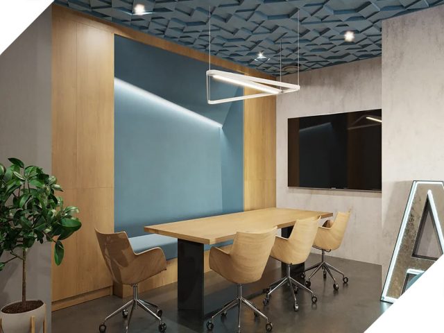– Design project of office, meeting rooms, manager’s office, pre-press bureau – something that creates convenience and comfort for employees and customers. We pay attention to the fact that the calculation of ergonomics of movement of employees through the rooms is also done by an interior designer. This is what our design studio does.