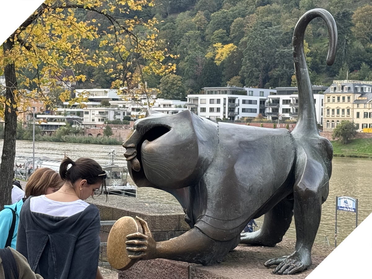 Even the pedestrian street changes. Some shops close, others open. My feeling is that the Hauptstrasse shops have become less sophisticated in recent years, and even the famous Kraus clothing shop, which for many decades maintained its independence and was a local landmark of the town, seems to have surrendered to mass merchandise. Only the monkey on the bridge remains at the same spot by the bridge over the Neckar, which is familiar to every visitor to the city.