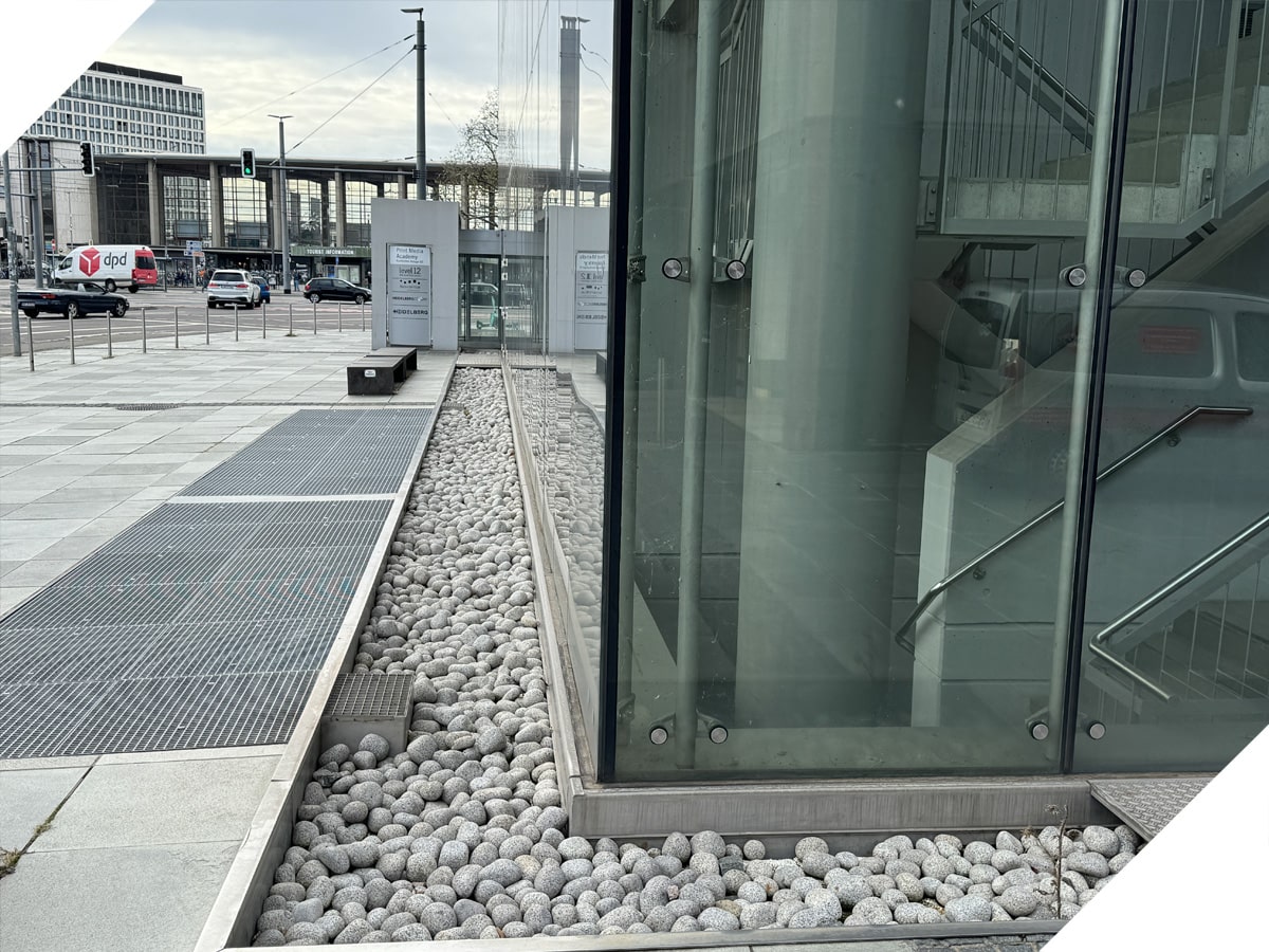 Right behind the PMA building, on the site of an old letterpress printing machine factory, are a residential neighbourhood with underground garages.
