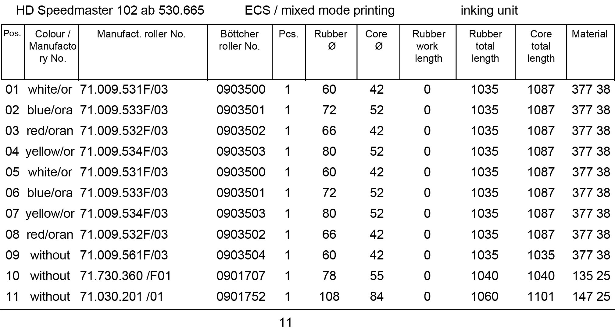 Set of new Boettcher rollers for one printing unit. The price is indicated in euros excluding VAT and without taking into account the return of old rollers.