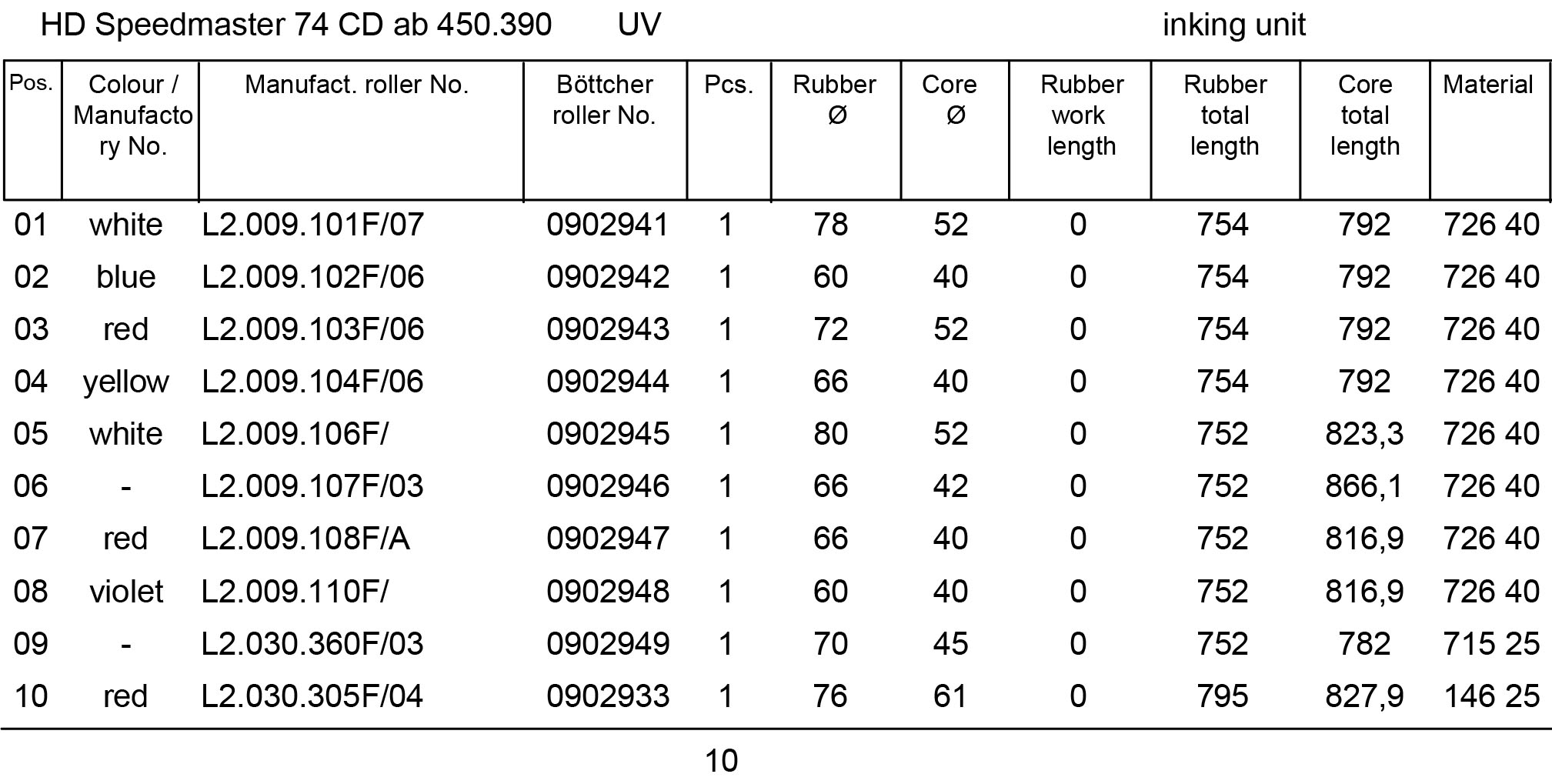 Set of new Boettcher rollers for one printing unit. The price is indicated in euros excluding VAT and without taking into account the return of old rollers.