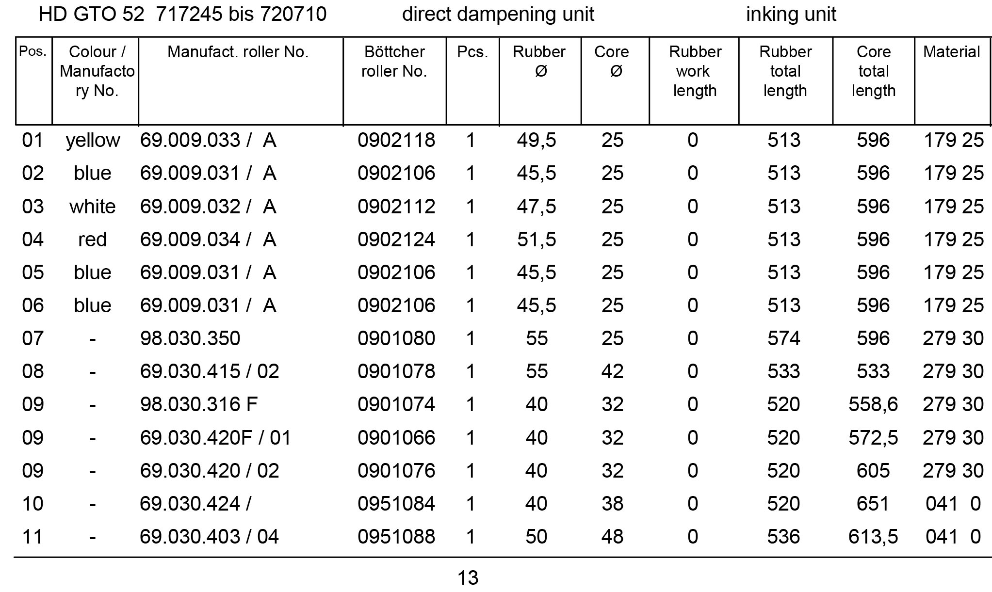 Set of new Boettcher rollers for one printing unit. The price is indicated in euros excluding VAT and without taking into account the return of old rollers.