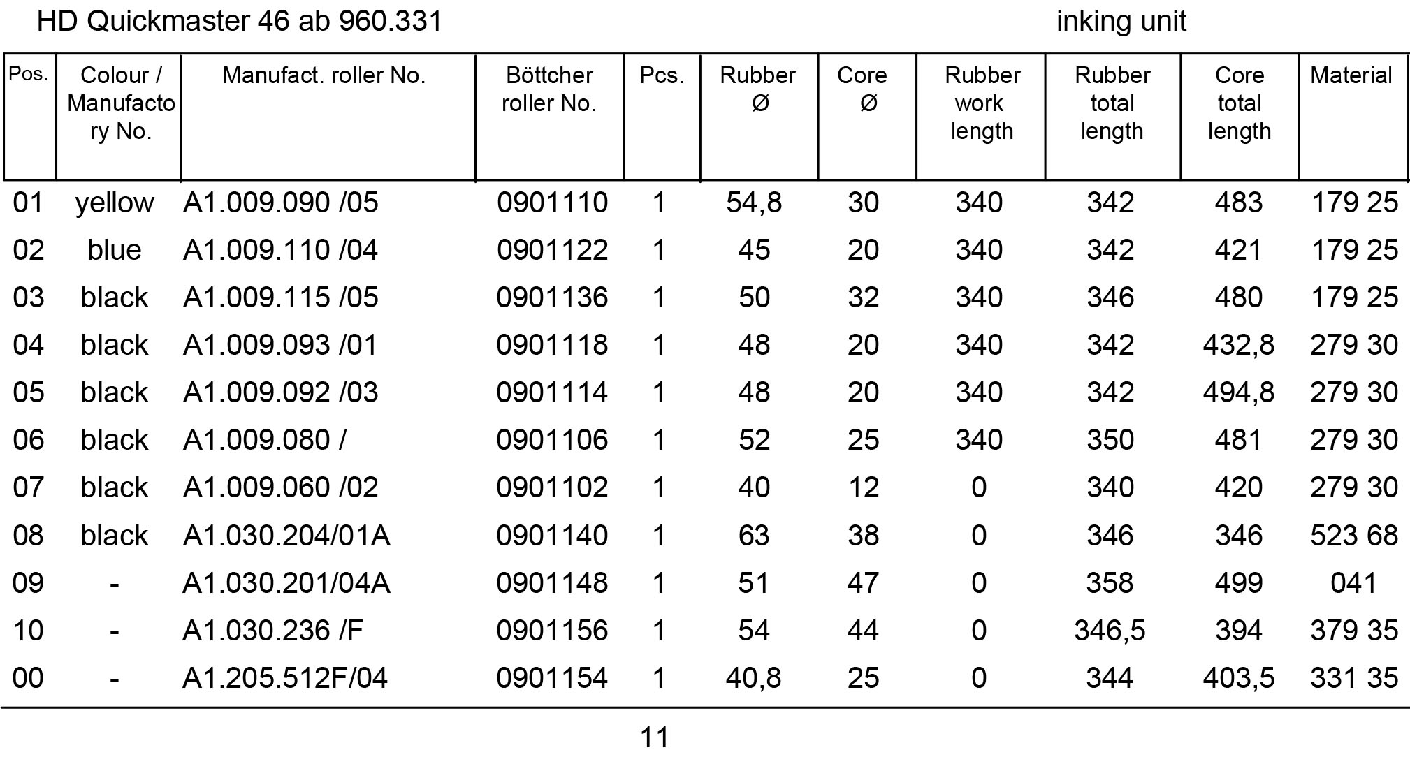 Set of new Boettcher rollers for one printing unit. The price is indicated in euros excluding VAT and without taking into account the return of old rollers.