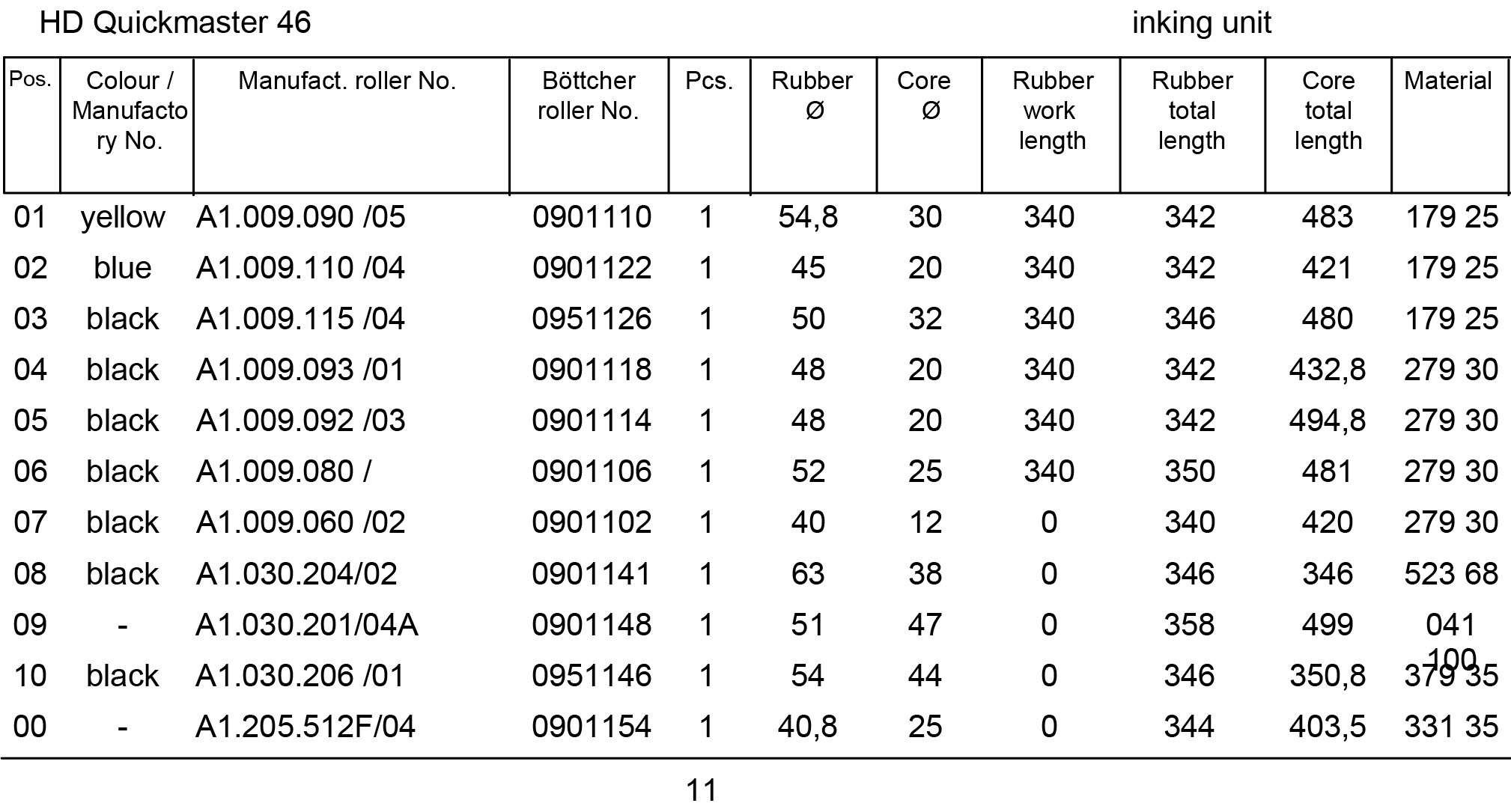 Set of new Boettcher rollers for one printing unit. The price is indicated in euros excluding VAT and without taking into account the return of old rollers.