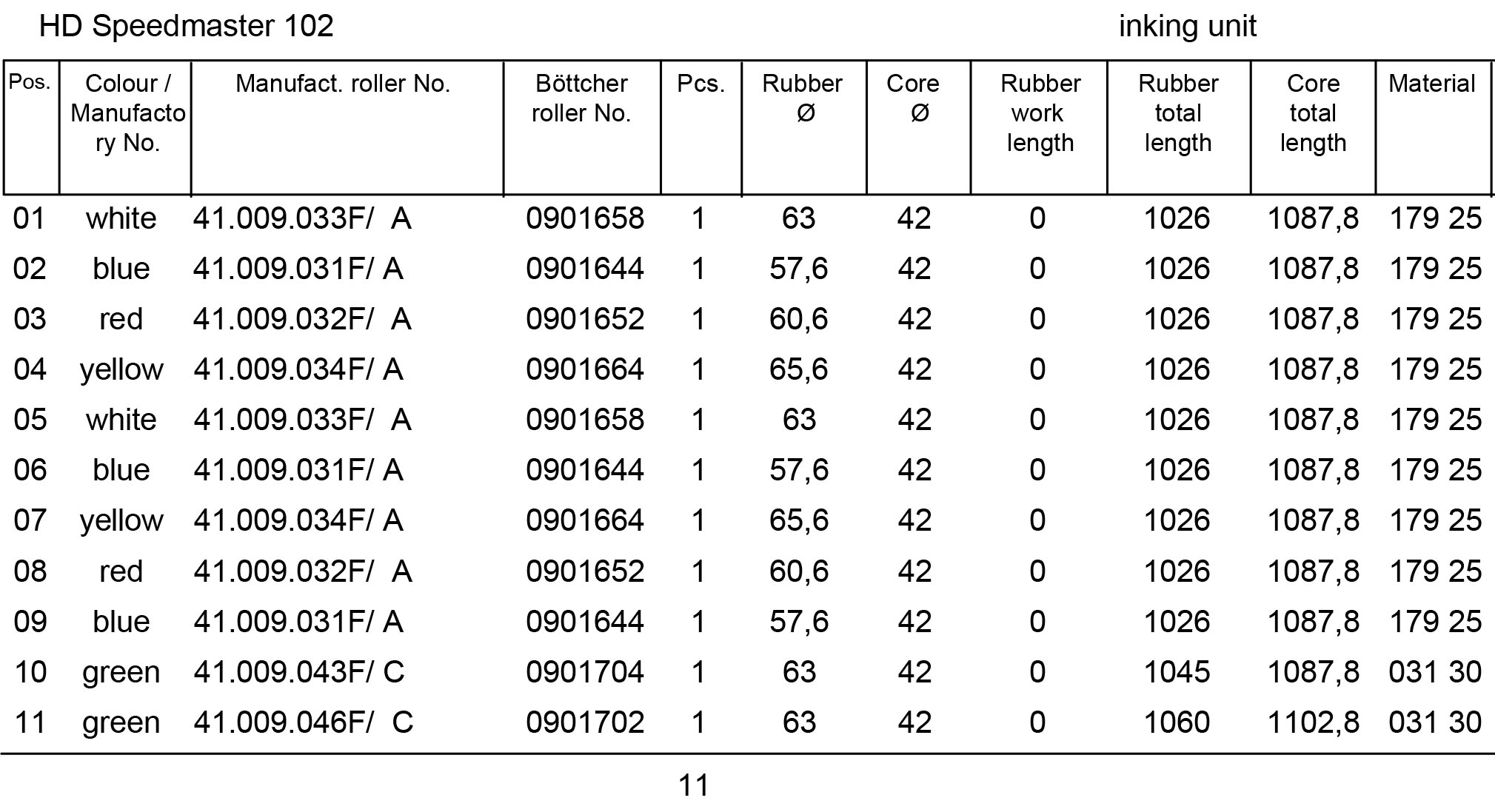 Set of new Boettcher rollers for one printing unit. The price is indicated in euros excluding VAT and without taking into account the return of old rollers.