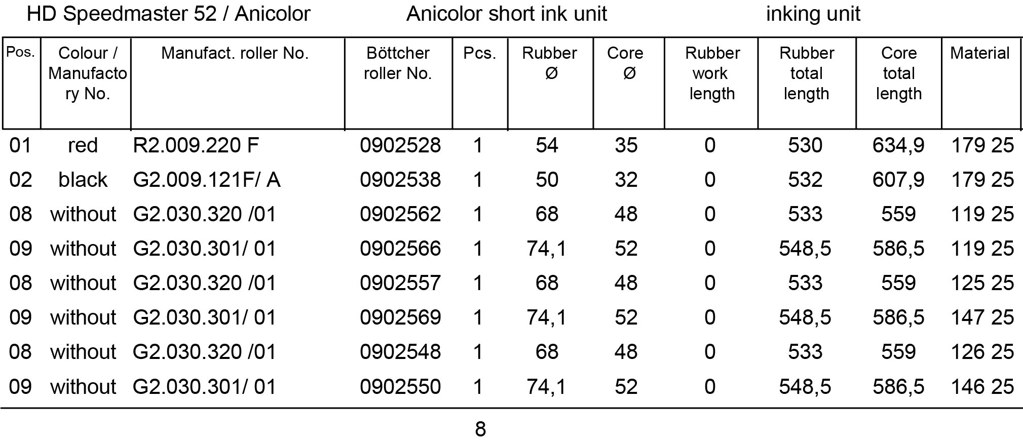 Set of new Boettcher rollers for one printing unit. The price is indicated in euros excluding VAT and without taking into account the return of old rollers.