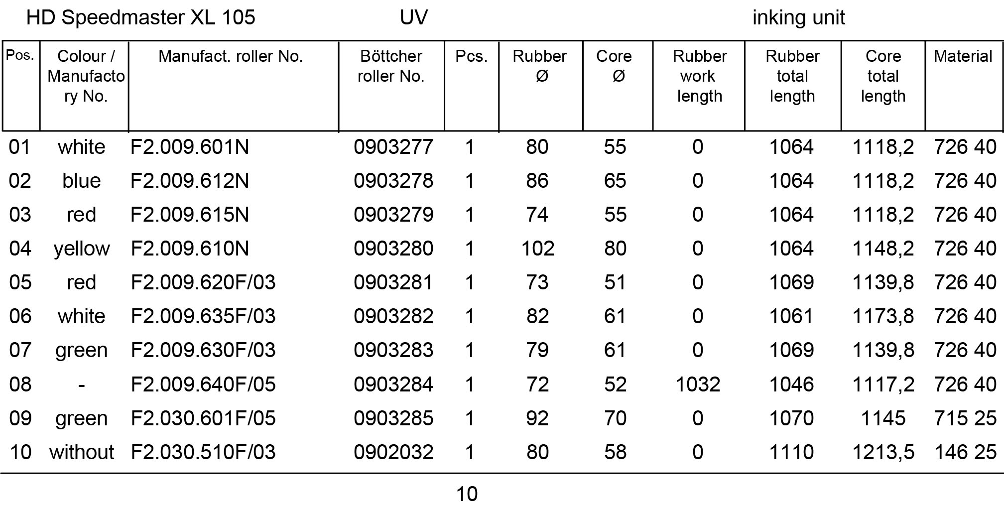 Set of new Boettcher rollers for one printing unit. The price is indicated in euros excluding VAT and without taking into account the return of old rollers.