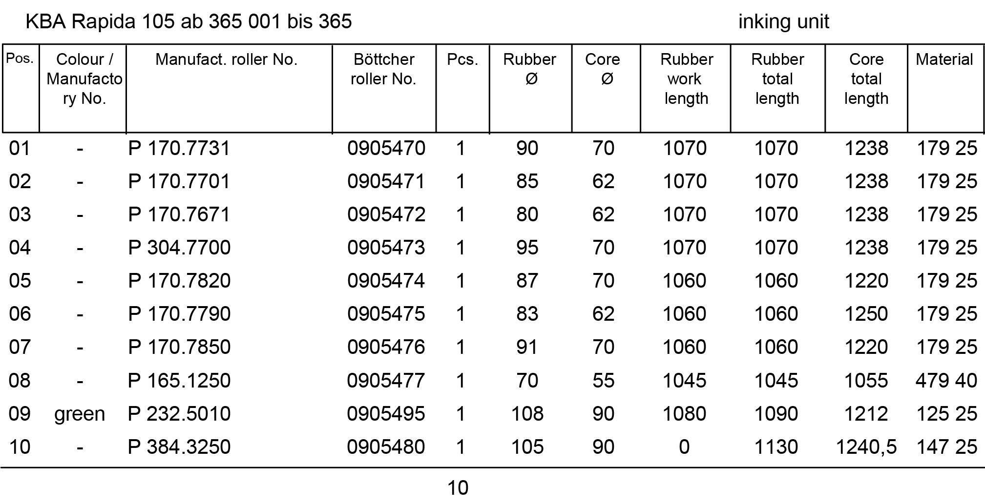 Set of new Boettcher rollers for one printing unit. The price is indicated in euros excluding VAT and without taking into account the return of old rollers.