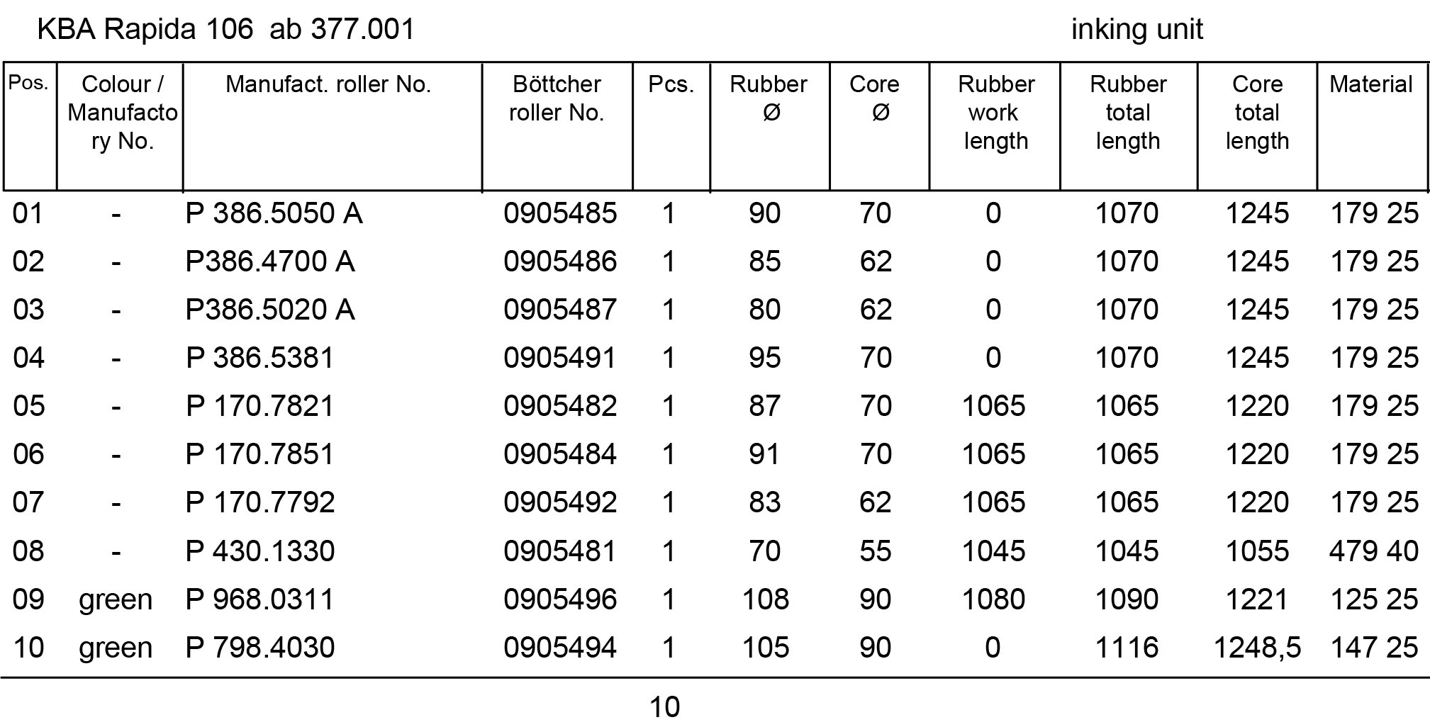 Set of new Boettcher rollers for one printing unit. The price is indicated in euros excluding VAT and without taking into account the return of old rollers.