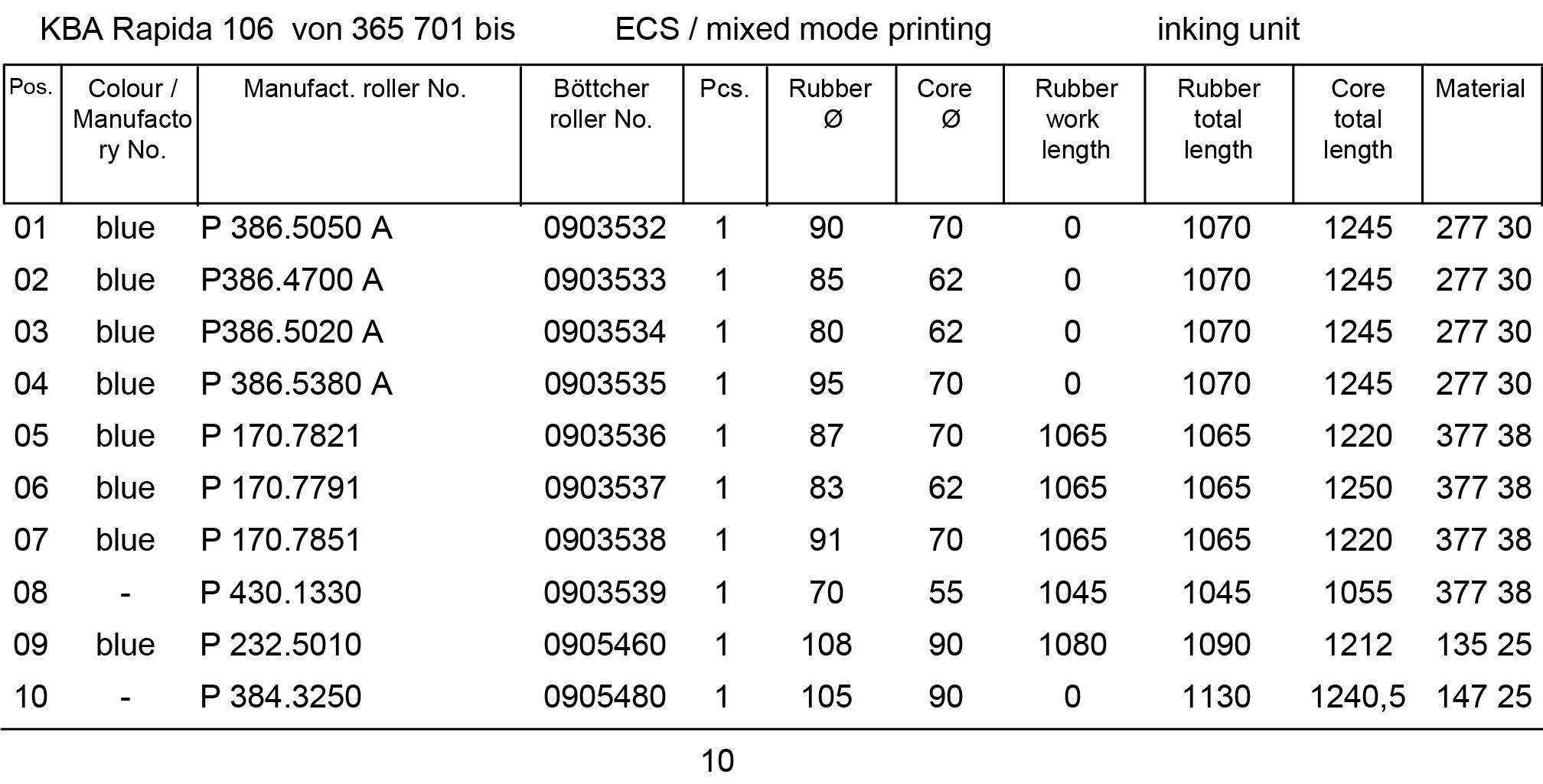 Set of new Boettcher rollers for one printing unit. The price is indicated in euros excluding VAT and without taking into account the return of old rollers.