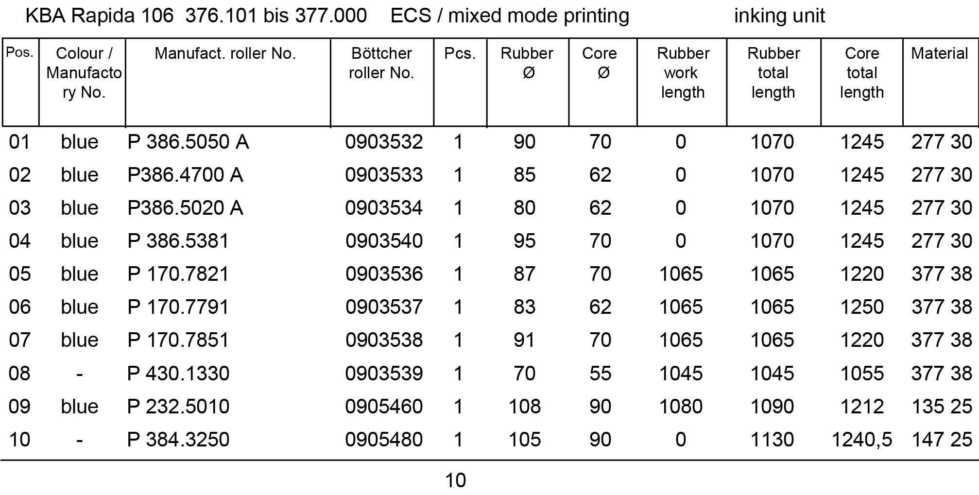 Set of new Boettcher rollers for one printing unit. The price is indicated in euros excluding VAT and without taking into account the return of old rollers.