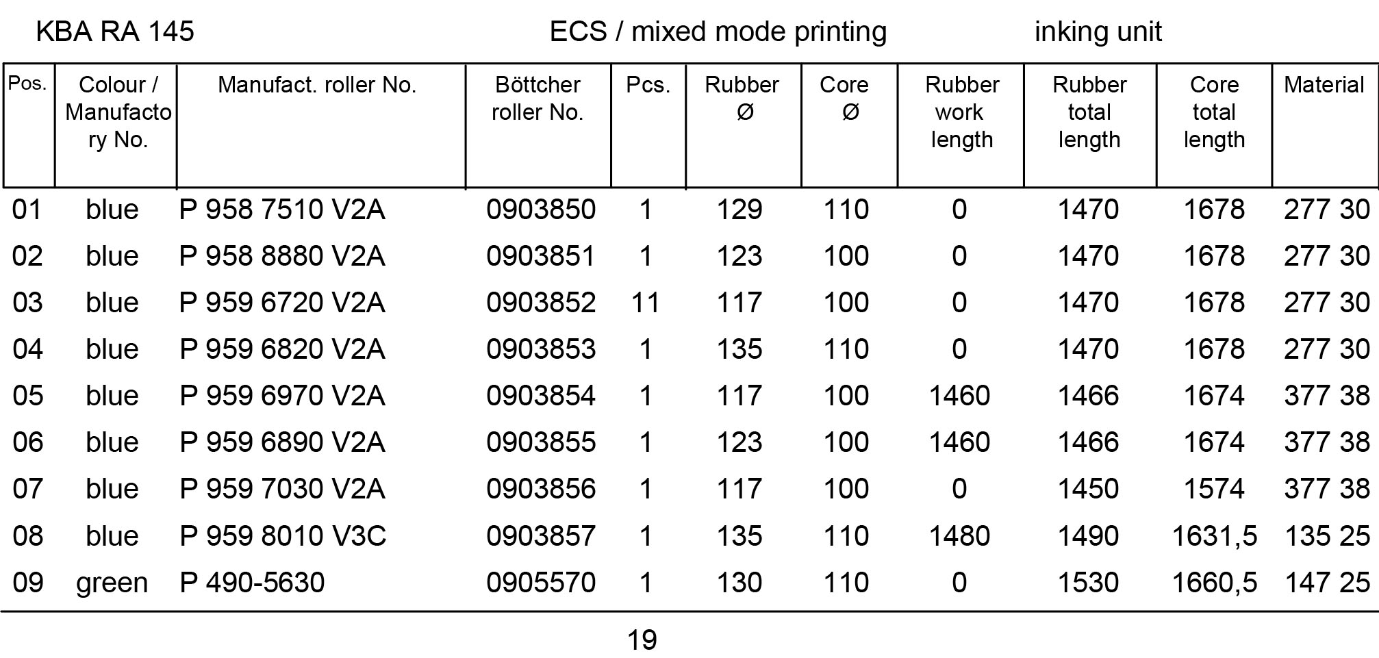 Set of new Boettcher rollers for one printing unit. The price is indicated in euros excluding VAT and without taking into account the return of old rollers.