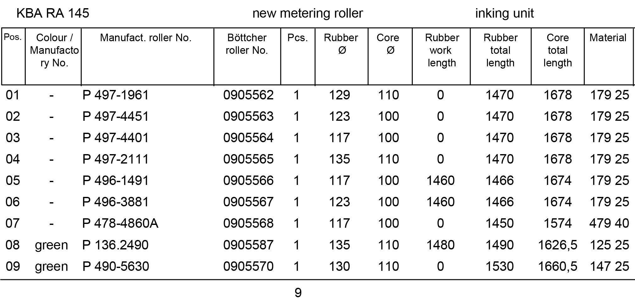 Set of new Boettcher rollers for one printing unit. The price is indicated in euros excluding VAT and without taking into account the return of old rollers.