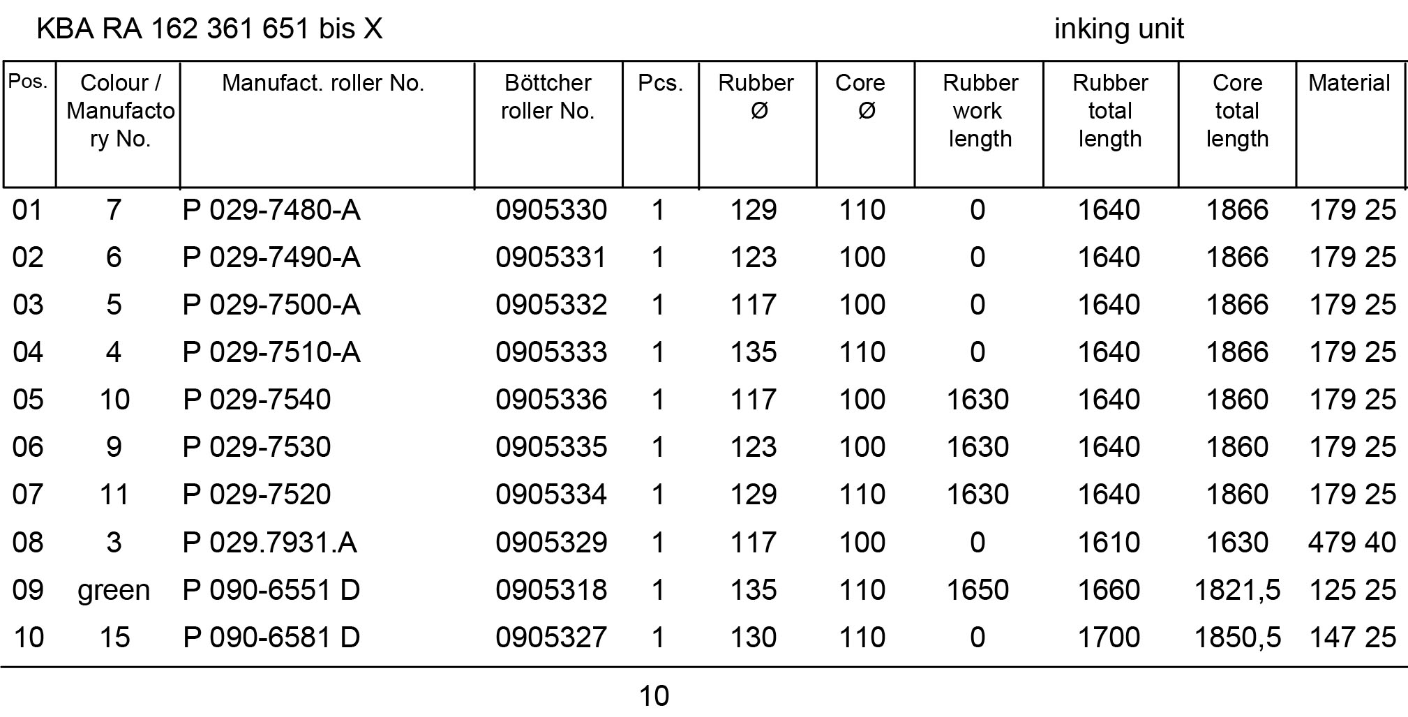 Set of new Boettcher rollers for one printing unit. The price is indicated in euros excluding VAT and without taking into account the return of old rollers.