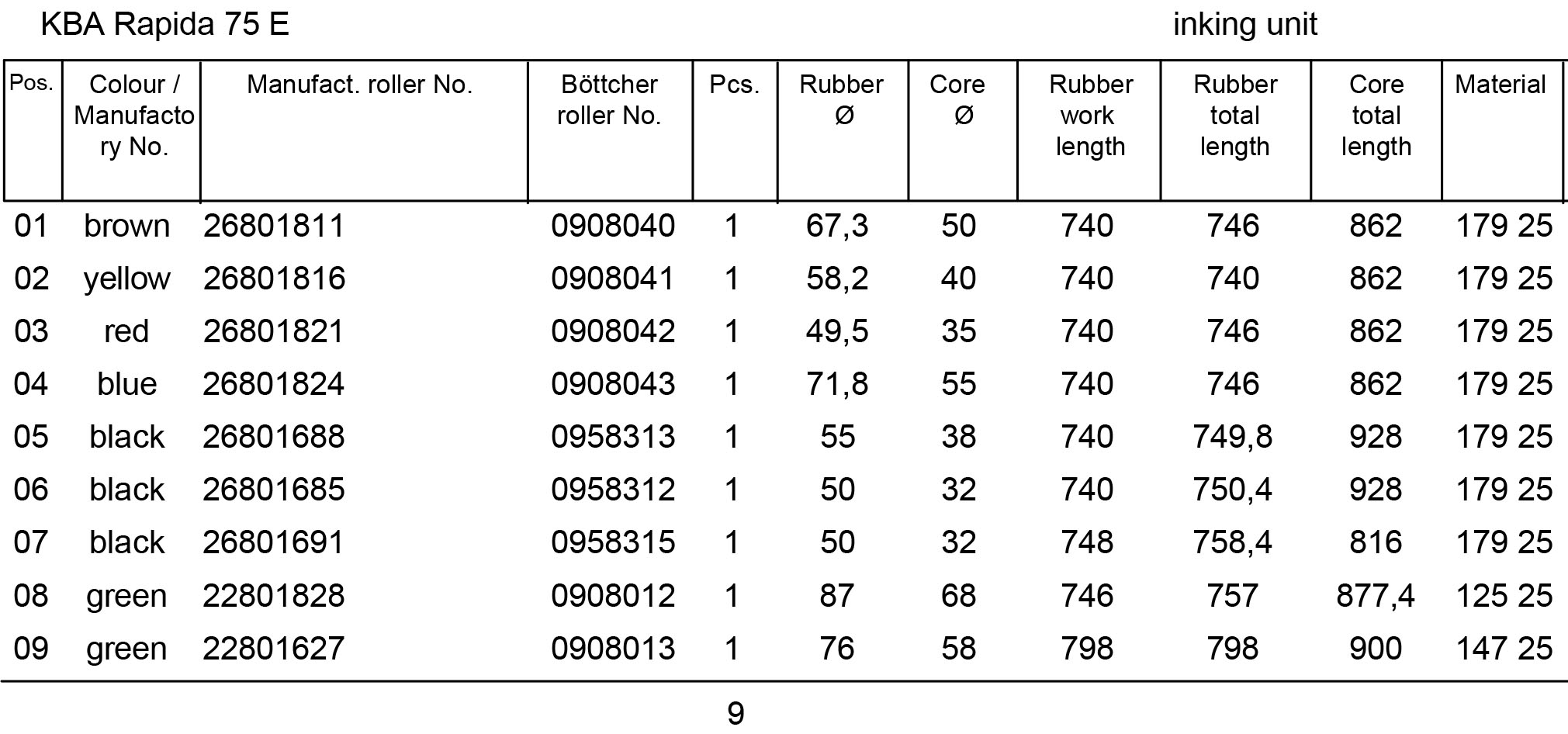 Set of new Boettcher rollers for one printing unit. The price is indicated in euros excluding VAT and without taking into account the return of old rollers.