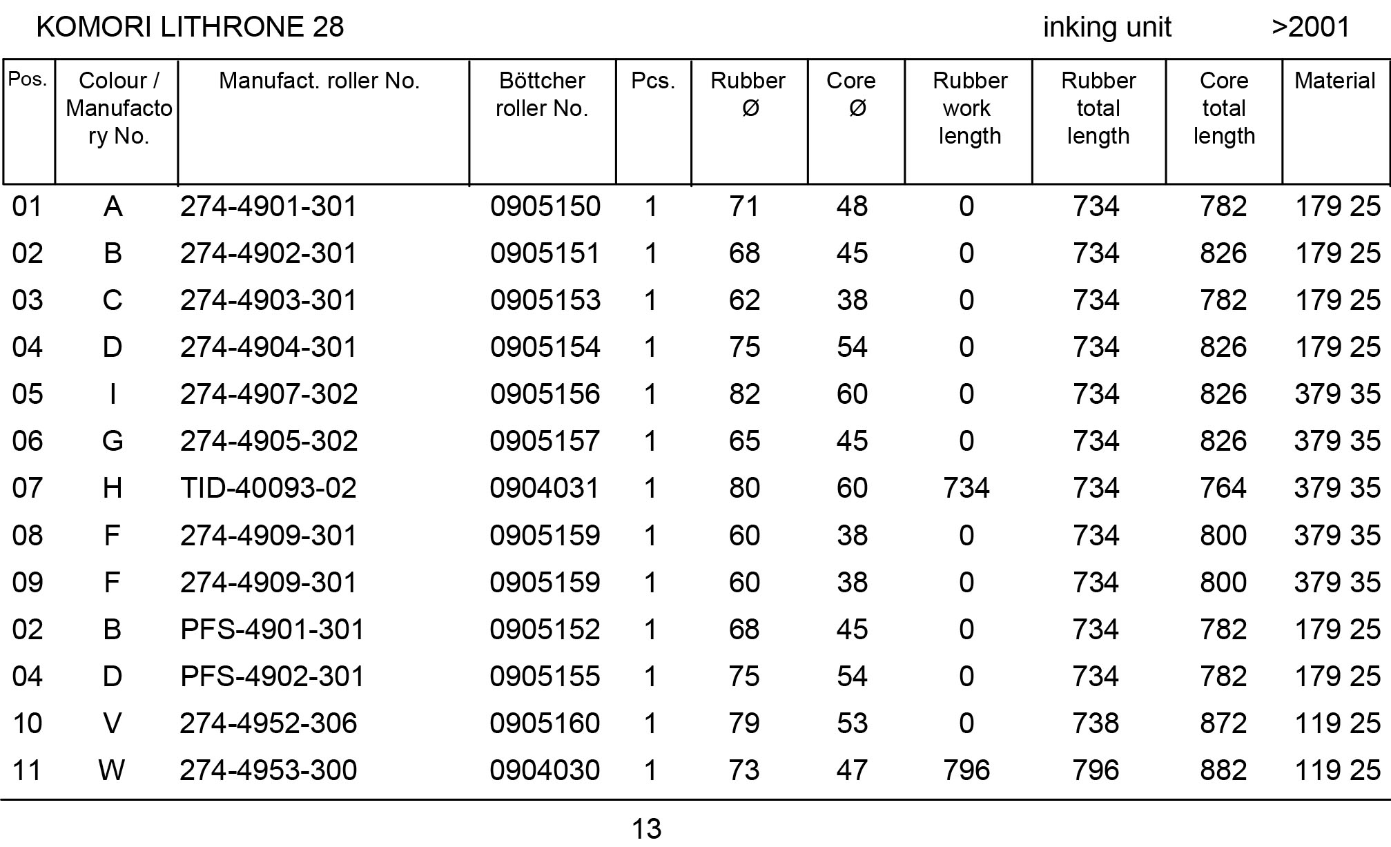 Set of new Boettcher rollers for one printing unit. The price is indicated in euros excluding VAT and without taking into account the return of old rollers.