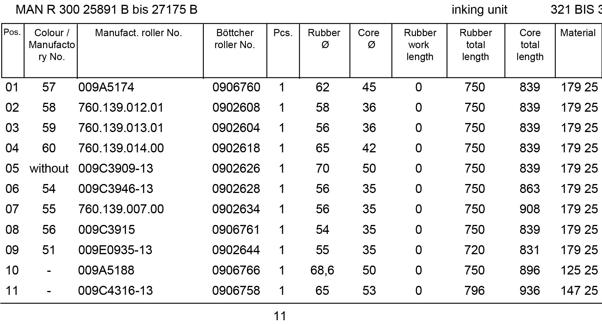 Set of new Boettcher rollers for one printing unit. The price is indicated in euros excluding VAT and without taking into account the return of old rollers.