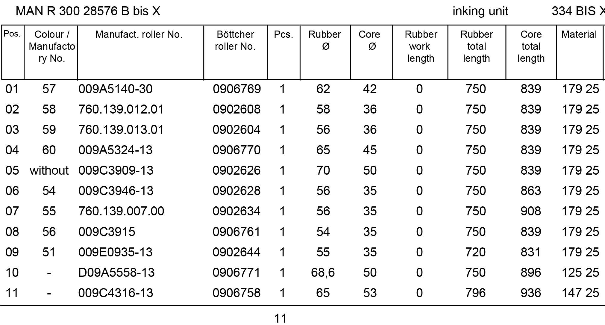 Set of new Boettcher rollers for one printing unit. The price is indicated in euros excluding VAT and without taking into account the return of old rollers.