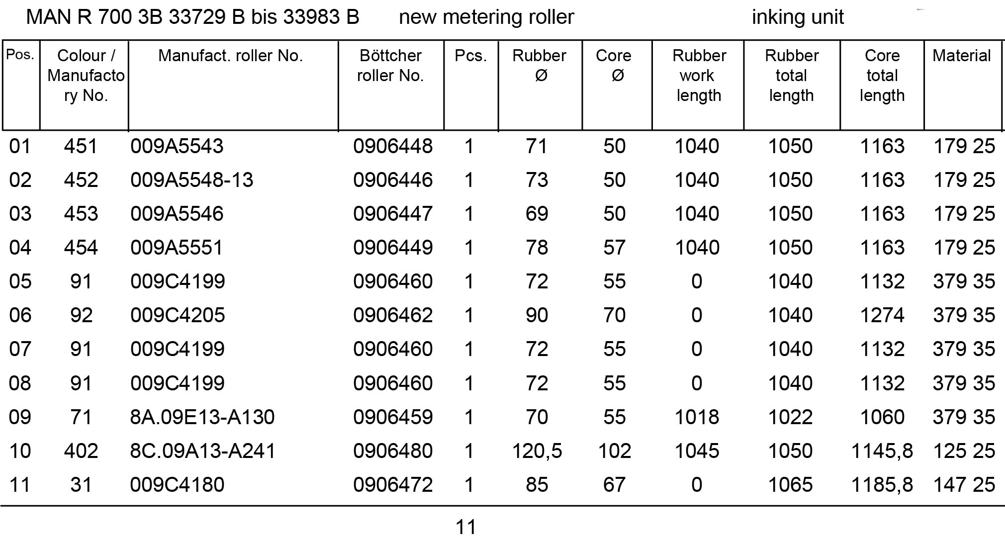 Set of new Boettcher rollers for one printing unit. The price is indicated in euros excluding VAT and without taking into account the return of old rollers.