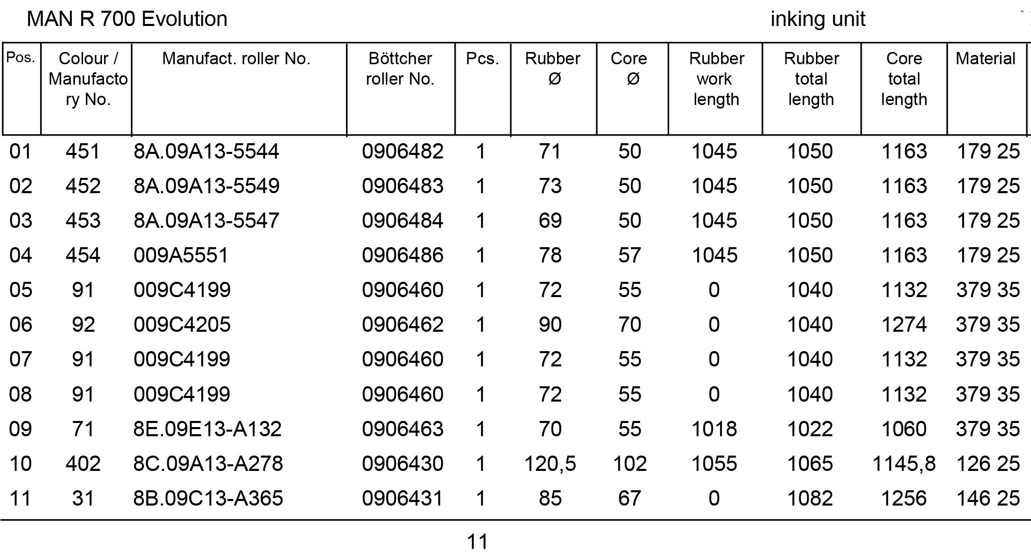 Set of new Boettcher rollers for one printing unit. The price is indicated in euros excluding VAT and without taking into account the return of old rollers.