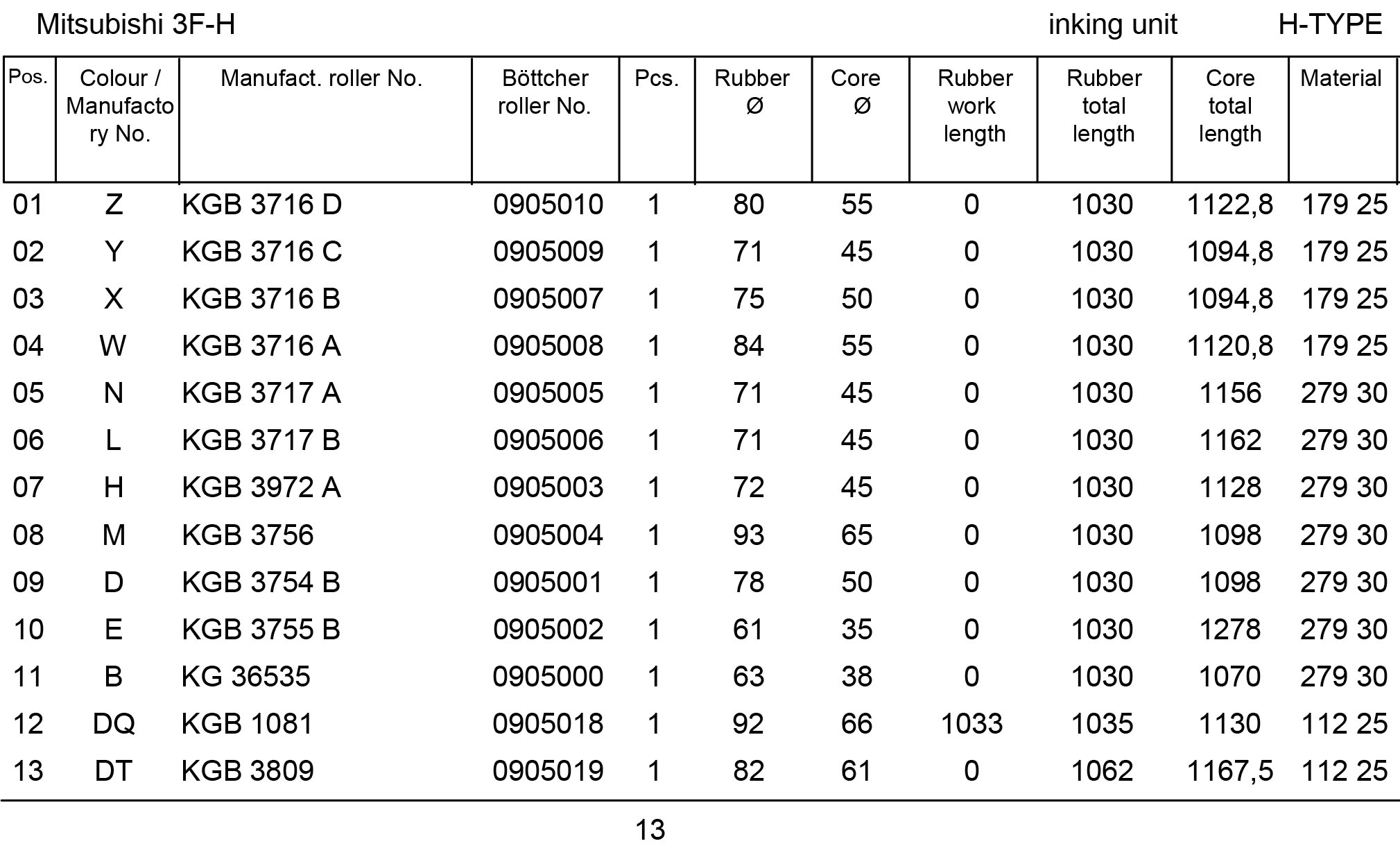 Set of new Boettcher rollers for one printing unit. The price is indicated in euros excluding VAT and without taking into account the return of old rollers.